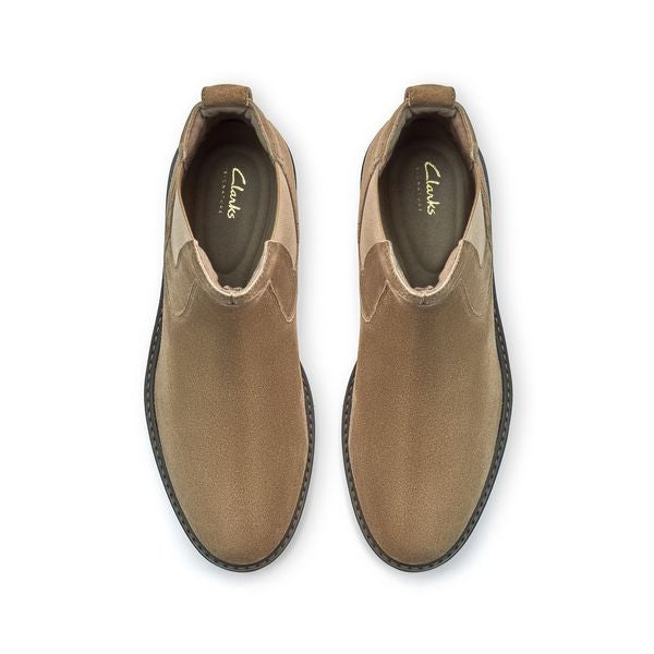 Newford Easy is a heritage-inspired casual boot that combines rugged design with crafted elements. Featuring archival references and rich leathers that age beautifully this easy-to-style boot delivers a distinctly Clarks feel. A Contour Cushion footbed offers unrivalled underfoot comfort while a TR sole guarantees durability. Premium dark sand suede uppers - Contour Cushion footbed supports every step - Heel pull assists easy on/off - Faux welt detail adds a crafted look - Metallic Glastonbury Tor branding adds a distinctive design detail - TR (thermoplastic rubber) sole delivers excellent grip