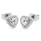 Crafted in silver, each eye-catching stud earring features an enchanting heart-shaped clear crystal center stone framed with a border of shimmering crystal accents. Buffed to a bright lustre, these earrings secure comfortably with push backs.