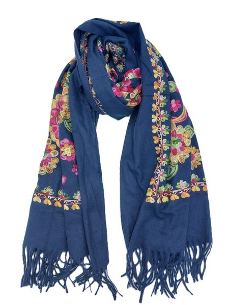 Autumnal viscose scarf with floral embroidery and fringes, perfect for warming up your winter days