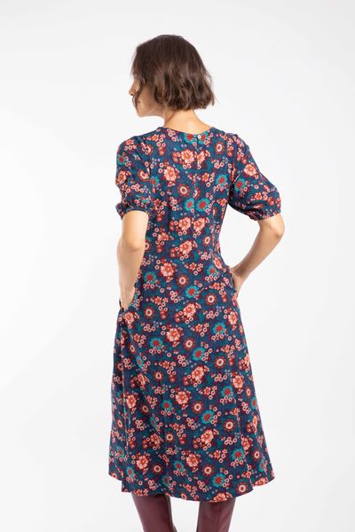 The Everly printed viscose dress feels like a dream from the moment you put it on. The fabric is super-soft and floaty, while also being breathable and cool. The Everly midi dress is slightly A line to give movement to the skirt, we have created shape with the empire line and dart details, then added these flirty puff, blouse sleeves for a feminine feel. These sleeves are elasticated so you can wear them down, or push them up for a puffier shape. If all that wasn't enough it also has pockets! We think you might have just found your new favourite dress.