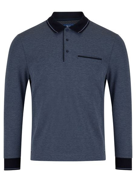 DRIFTERS POLO SHIRT L/S 553-55229-DARK BLUE